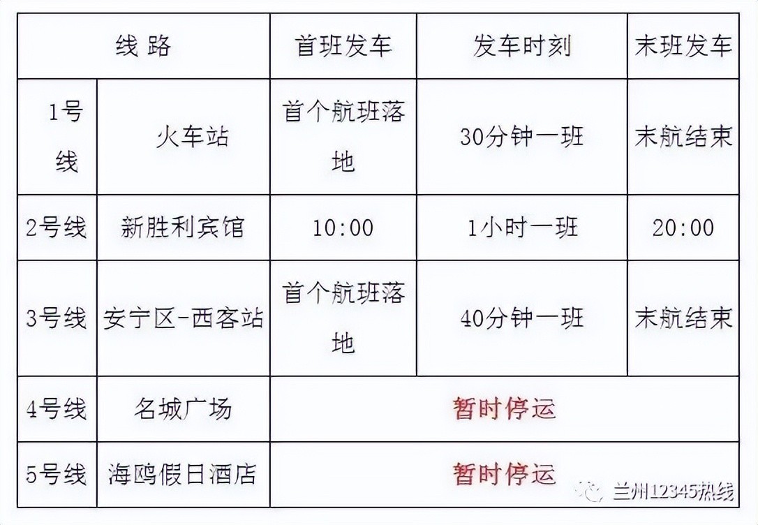 暂停原经停站点“安盛国际酒店”。新增经停站点“吾悦广场(3号门)”和“兰州交通大学(北西门)”,机场巴士其他线路信息不变,望周知。