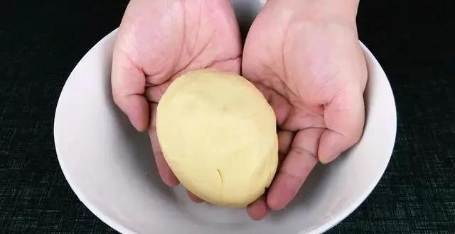 2.然后我们进行搅拌,用我们干净的小手揉搓,揉搓成这样的光滑一些的面团就可以了。