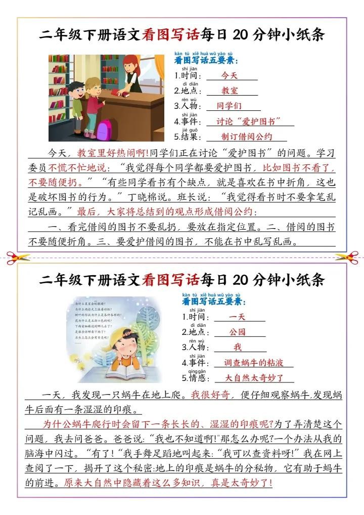 二年级下册语文看图写话,每日20分钟小纸条,共22页,可打印