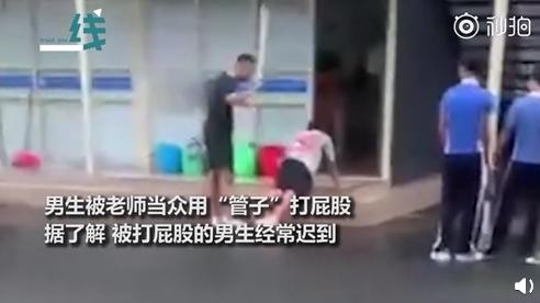学生迟到双手撑地被老师拿“棍子”抽屁股 老师道歉:自己气昏头