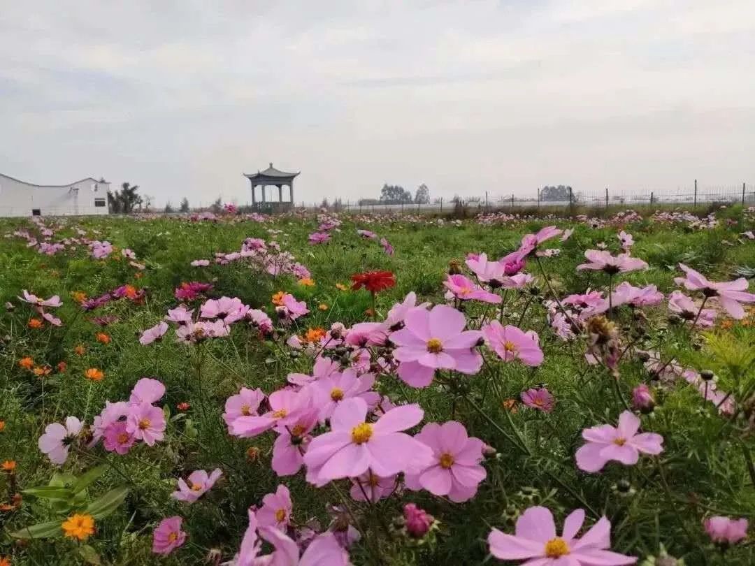 千米滩涂栈道,小清新的田园风光,凌霄花、月季、郁金香、波斯菊……一直在开着。