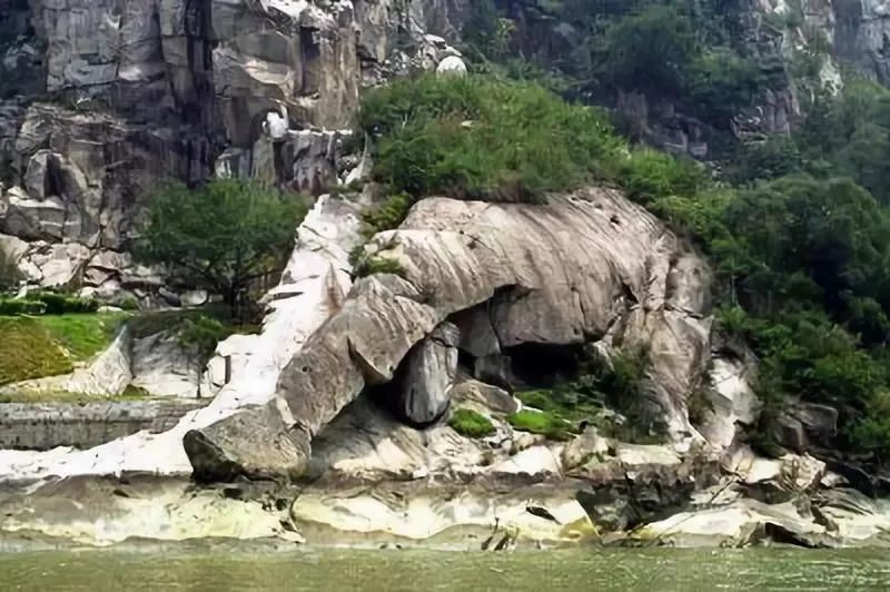 在闽江下游的石龙山峭壁之下,这条从山麓伸到江面的花岗条岩,形如金刚天王的大腿,栩栩如生,很是形象!