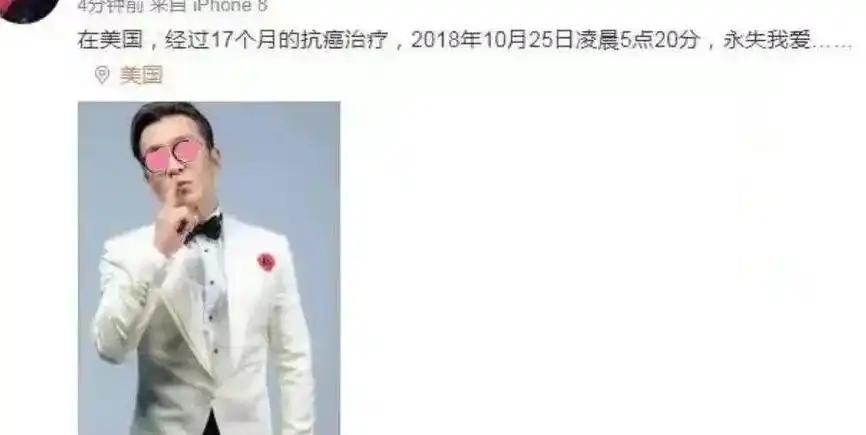 那个时候,他的妻子哈文在微博上发布了简短而沉痛的讣告:“在美国,经过17个月的抗癌治疗,2018年10月25日凌晨5点20分,永失我爱……”