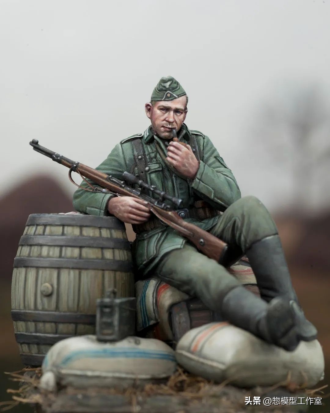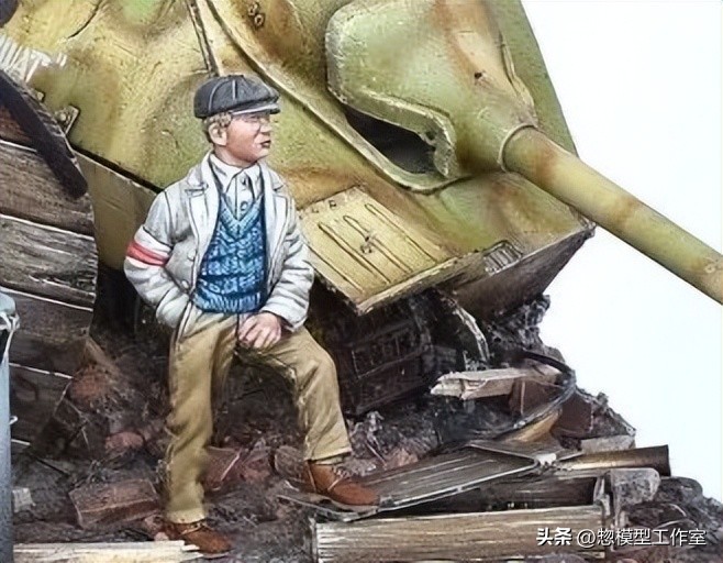 诗言志,模型作品也是一样,这个作品聚焦人物,光影构图无可挑剔,对背景战车的局部切割也强化了人物作为中心表现的地位。这位留下影像的骄傲的波兰起义士兵用坚毅的眼神望向未来。作品立意深远,表达了人类反抗侵略战争的坚定信念。