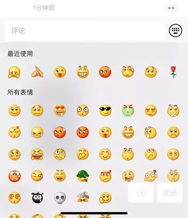 目前,朋友圈仅支持使用官方“小黄脸”表情评论的功能。