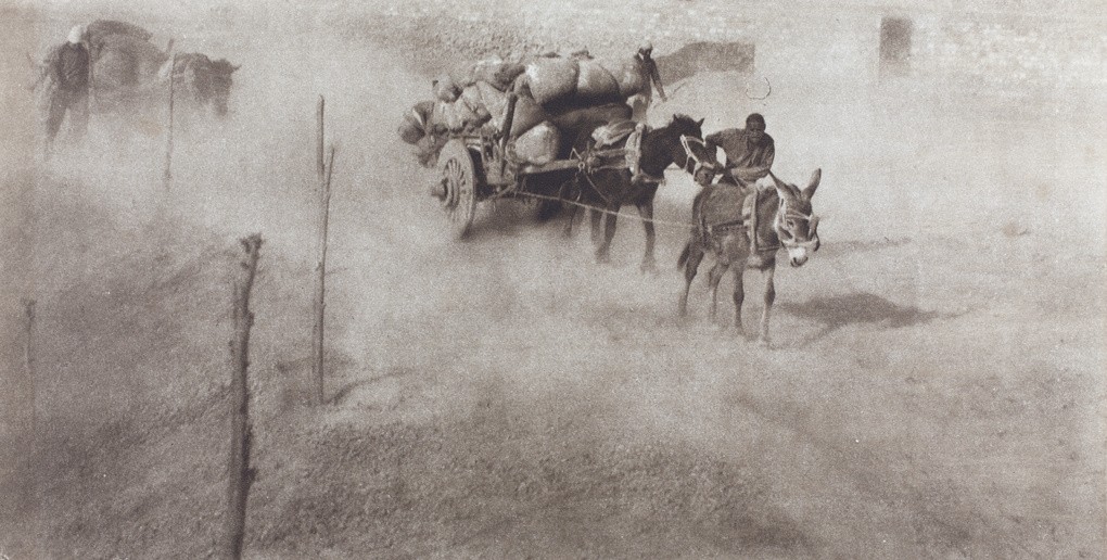 1920北京尘土飞扬的道路上引导货车