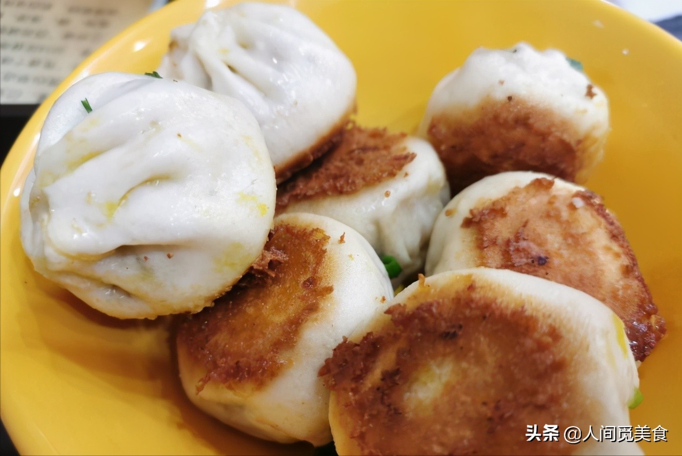 如果不喜欢吃玉兰饼,那么可以试试店里的生煎馒头。他们家的生煎馒头不像杭州的那种,用的是半发面,皮很薄,而且很宣软,收口也是软软嫩嫩,没有死面疙瘩,汤汁没有那么丰盈,但是味道很家常,淡淡的甜味把鲜甜口突出得更明显。里面的馅儿用的是白肉,原汁原味吃起来更新鲜。