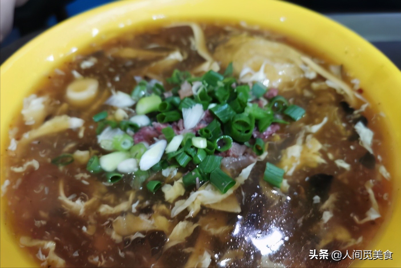 当地人吃玉兰饼喜欢配酸辣汤,他们家的酸辣汤比较粘稠,料很足,一定要趁热吃,热乎乎的才下肚就上头了,感觉太过瘾,里面有笋丝、黑木耳、香菇、百叶、鸡蛋、粉丝等等,还要加一勺碎牛肉和青蒜碎,酸酸辣辣的比例刚好,两者完美融合,又开胃又解腻。