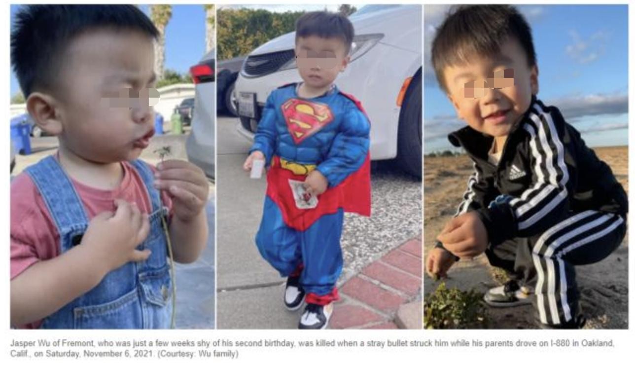 值得一提的是,就在前几天,一名华裔2岁男童在美国高速路遭遇黑帮枪战,不幸被流弹击中头部死亡。而当时,他的父亲还身在中国,也从未见过孩子一面,令人叹惋!