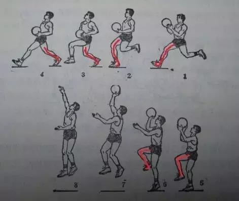 再看看这张图,红色标注脚为中轴脚,上篮手一般与中轴脚同边,能够将篮球抛向最高点。以后千万别弄错上篮手(除非拉杆),会非常不协调。