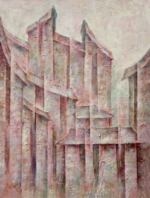 西递·红 油画颜色 木板亚麻布护边 1996 60.5cm×46cm