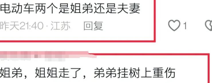无辜死去的两个女孩,一个是姐姐,一个是弟弟,他们正骑着电动车准备过马路,谁知道会遭遇这样飞来横祸。弟弟还被撞到了路边的树上,简直让人心疼。