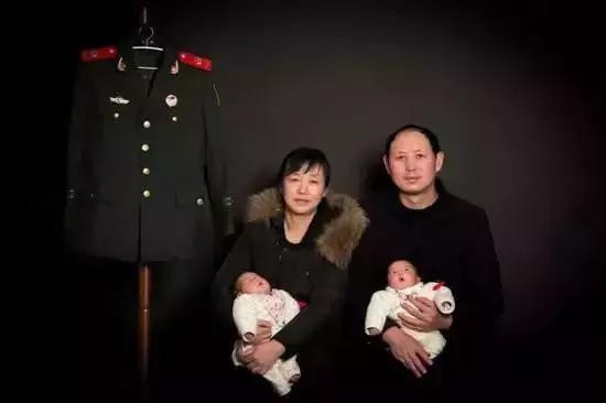 和他们新出生的龙凤胎拍摄了一张全家福,
