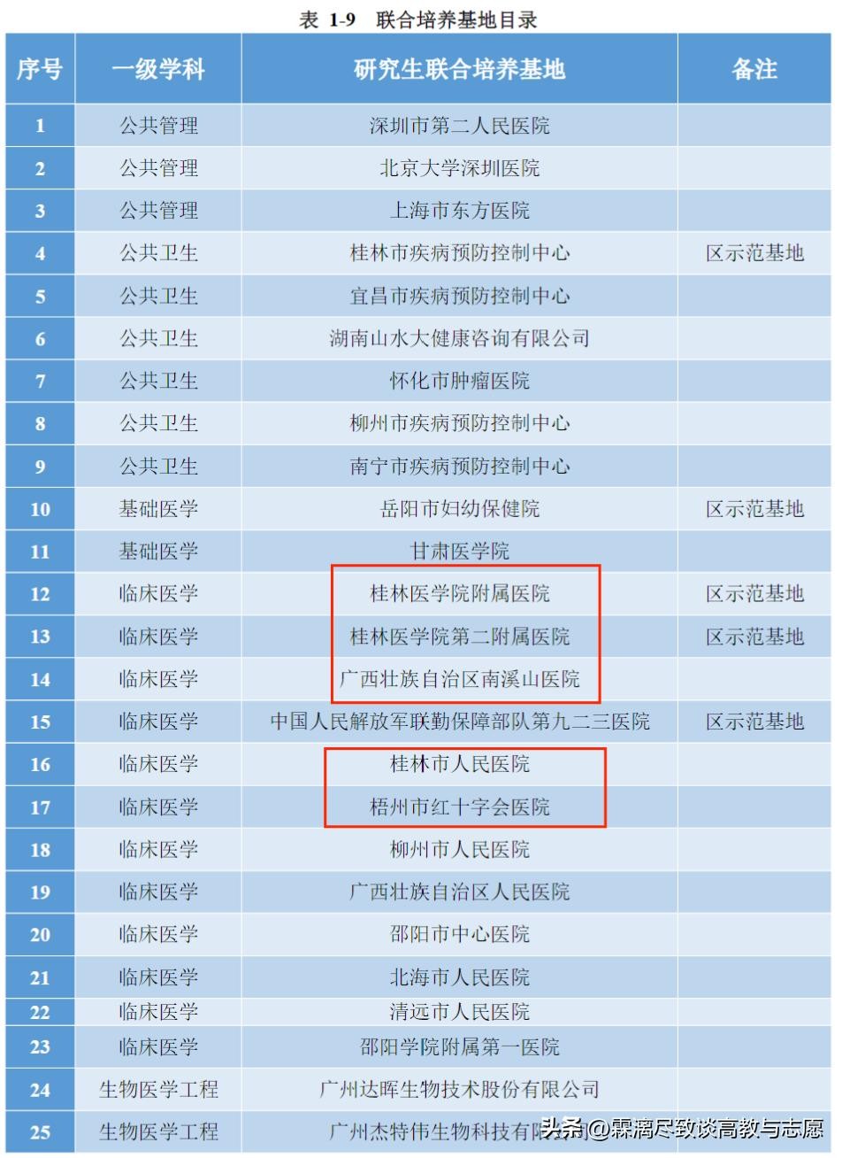 桂医的联合培养单位有: