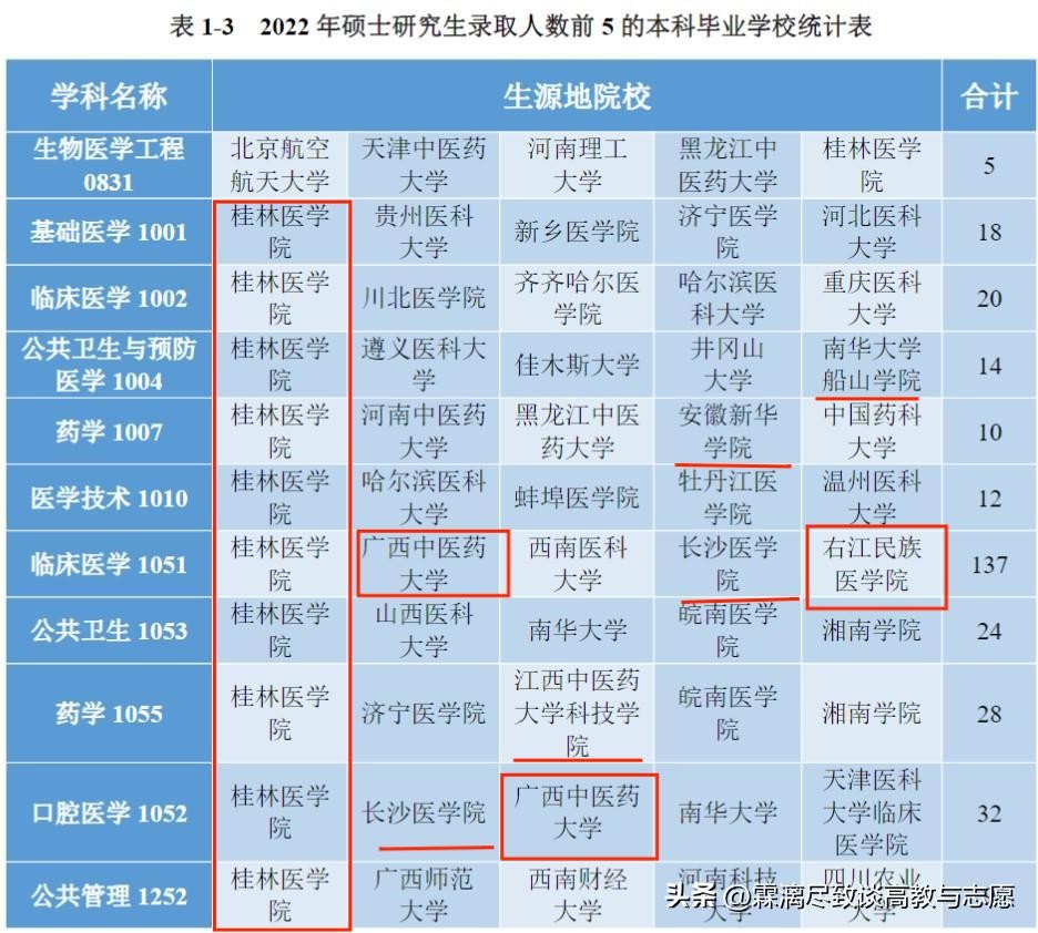 第一,桂医更多把读研的机会,留给了本校的学生;第二,桂医对民办高校学生友好;第三,桂医对四非院校学院也比较友好;第四,桂医确实照顾广西的学生,广西中医药和右江民族医学院也在榜上。
