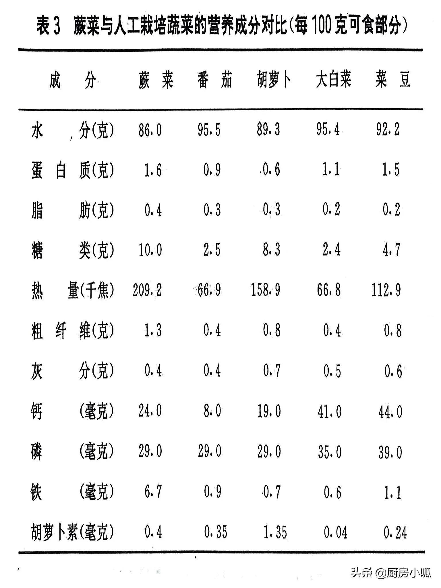 (二)蕨菜的营养成分