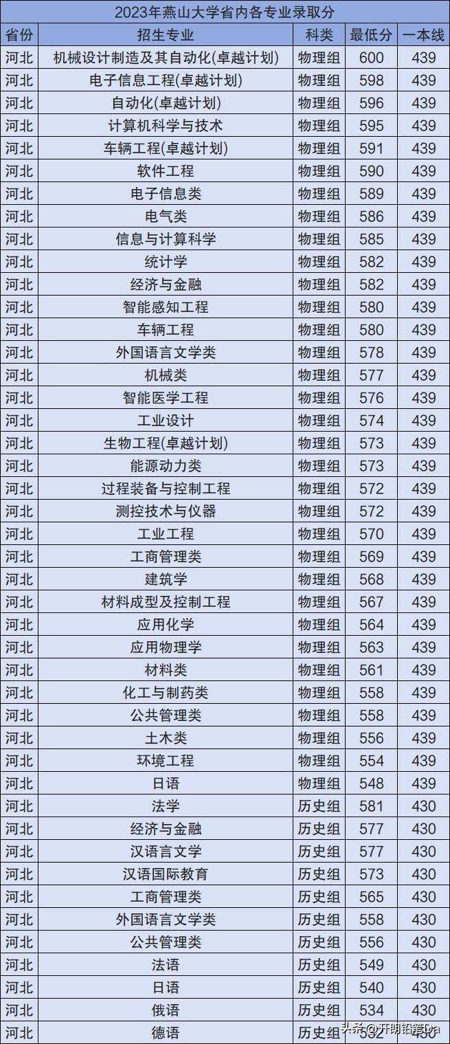 本期老师将带来2023年燕山大学各省最低分一览表,包括燕山大学省内各专业录取分数线汇总,供参考。