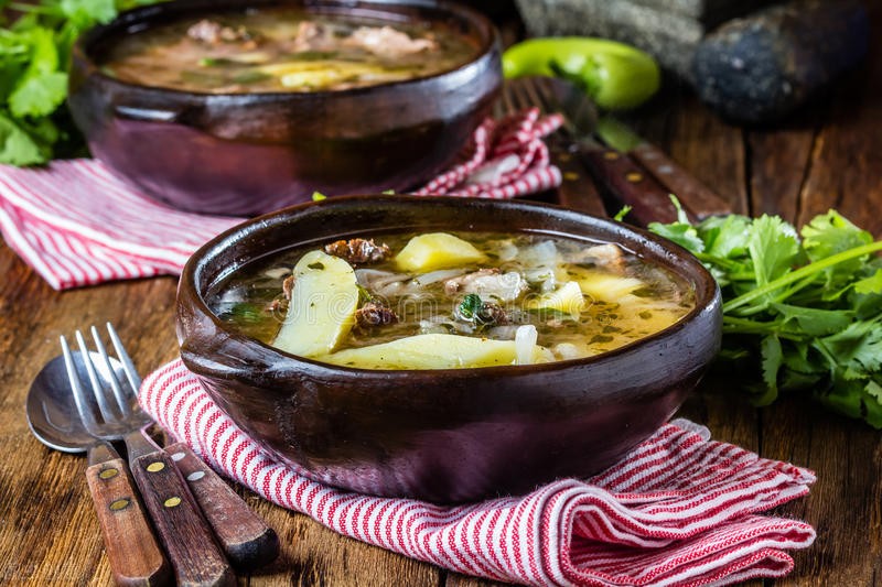 Ajiaco:它是用红薯、芋头、木薯及各种肉类混合而来的,多种食材混搭,经过长时间烹煮的薯类会变得黏稠,配合肉类,非常鲜香。