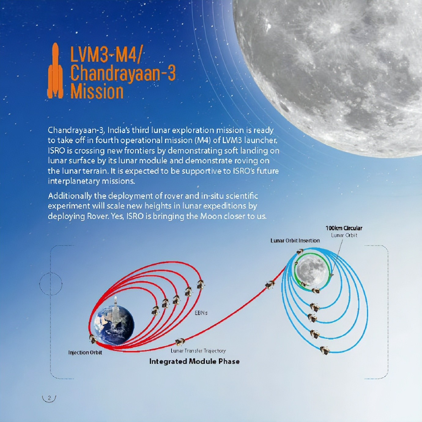 月船三号的轨道非常复杂,它是由印度的LVM3-M4火箭发射升空,先进入170×36500km×21.3º的大椭圆环地轨道,每次在近地点的时候,月船三号的推进舱都会点火推自己一把,就这样实施5次变轨机动之后,让远地点抬升到38万千米高度,进入地月转移轨道。