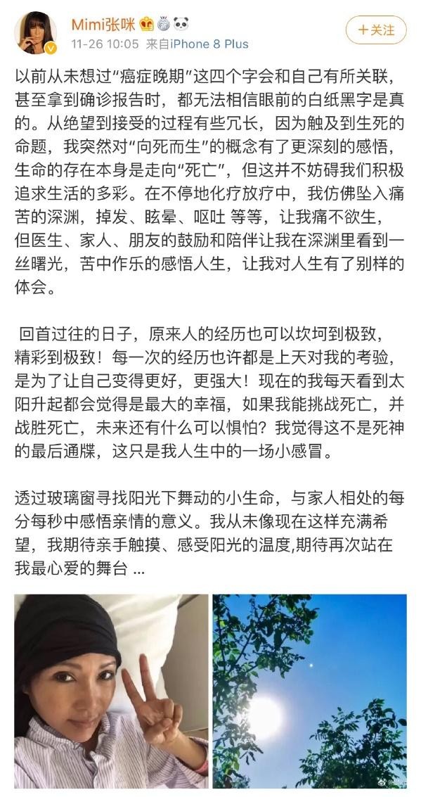 在被确诊后,她积极治疗,正如她所说,她没想过“癌症晚期”会和自己有所关联。