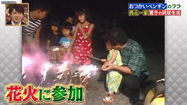 入了夜,拉拉还会和邻里们一起放烟花,看着绚烂的烟火,拉拉诧异得像个孩子。