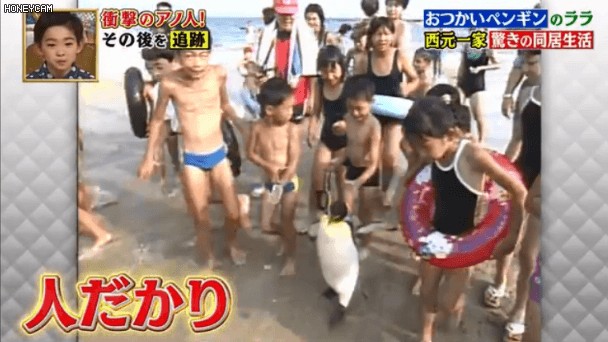 鹿儿岛人会绘声绘色地给你讲述二十几年前,曾经有一只企鹅经常背着一个可爱的企鹅小背包招摇过市,讨鱼吃,讨水喝,不仅上过电视,还拍过广告。
