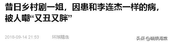 环球精选2018年9月14日报道昔日乡村剧一姐,因患和李连杰一样的病,被人嘲“又丑又胖”