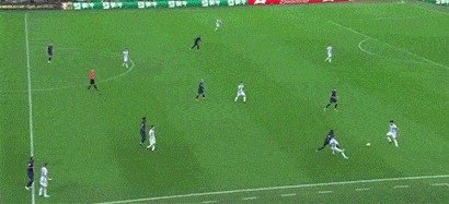 恩佐不光会横向转移,也能往前传。同一场比赛的第10分钟,他就用一记精准的长传制造了进攻威胁。