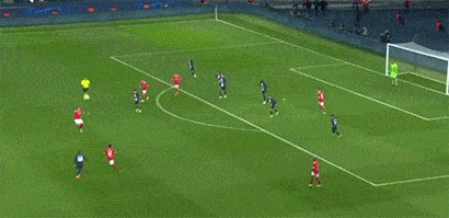 后者利索地连停球带转身,抬头稍作观察,送出一脚精准的斜长传,找到左路无人盯防的迪马利亚。