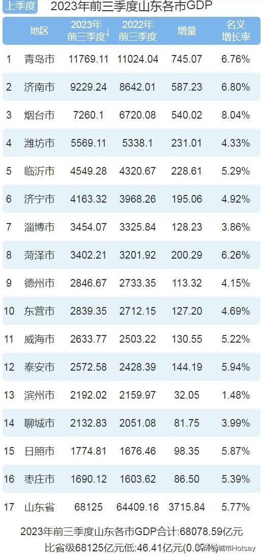 山东省16市GDP大排名:济南第2,临沂第5,烟台发力