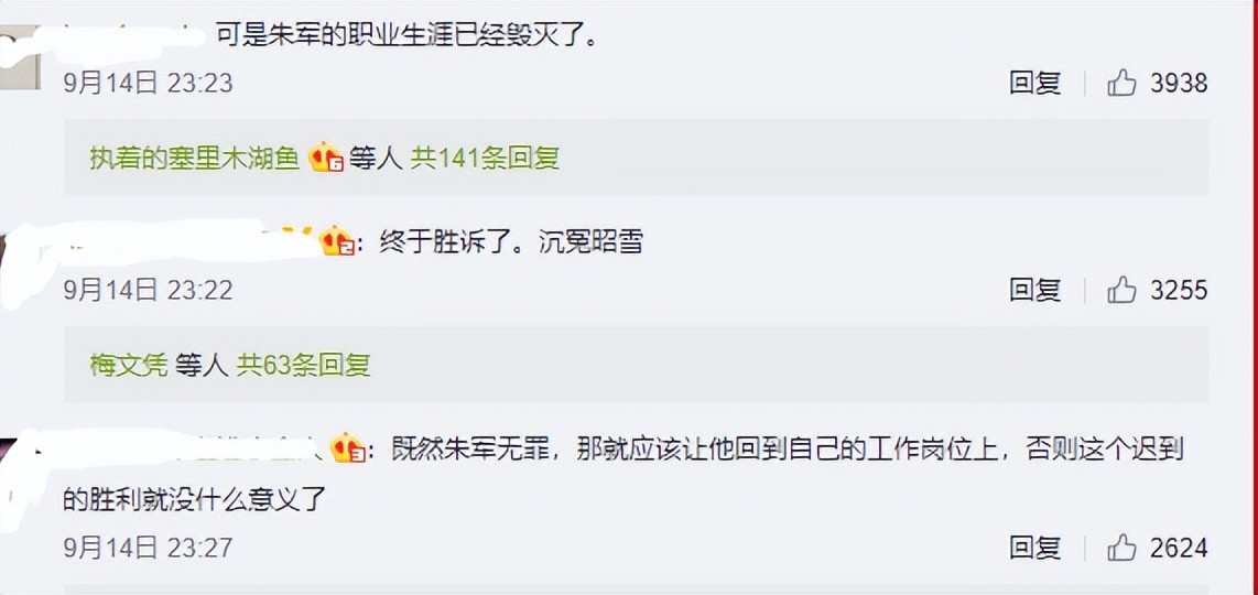 好多网友忧虑:朱某官司赢了,职业生涯休矣。