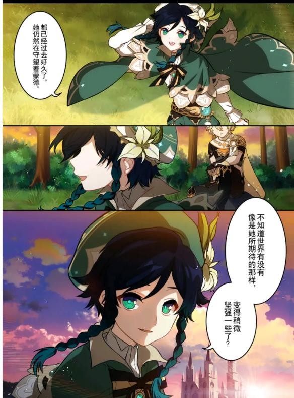 温妮莎解放蒙德之后,将贵族流放,设立西风骑士团代替自身守护蒙德,而她则对天空岛发起了挑战。最终,温妮莎登上天空岛成神