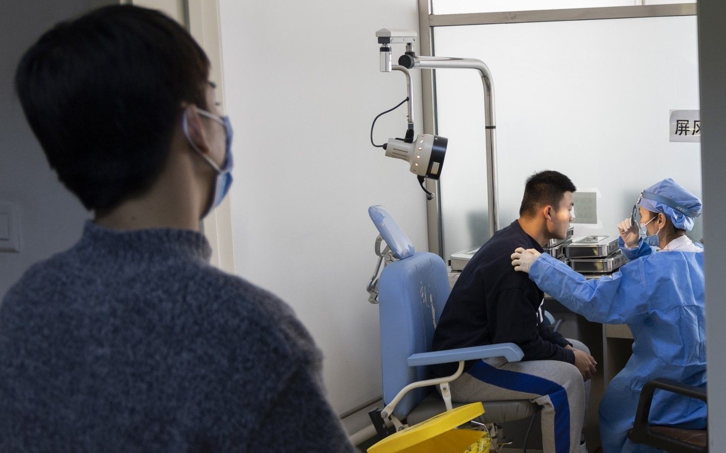 医生对学生耳部进行检查。新京报记者 陶冉 摄