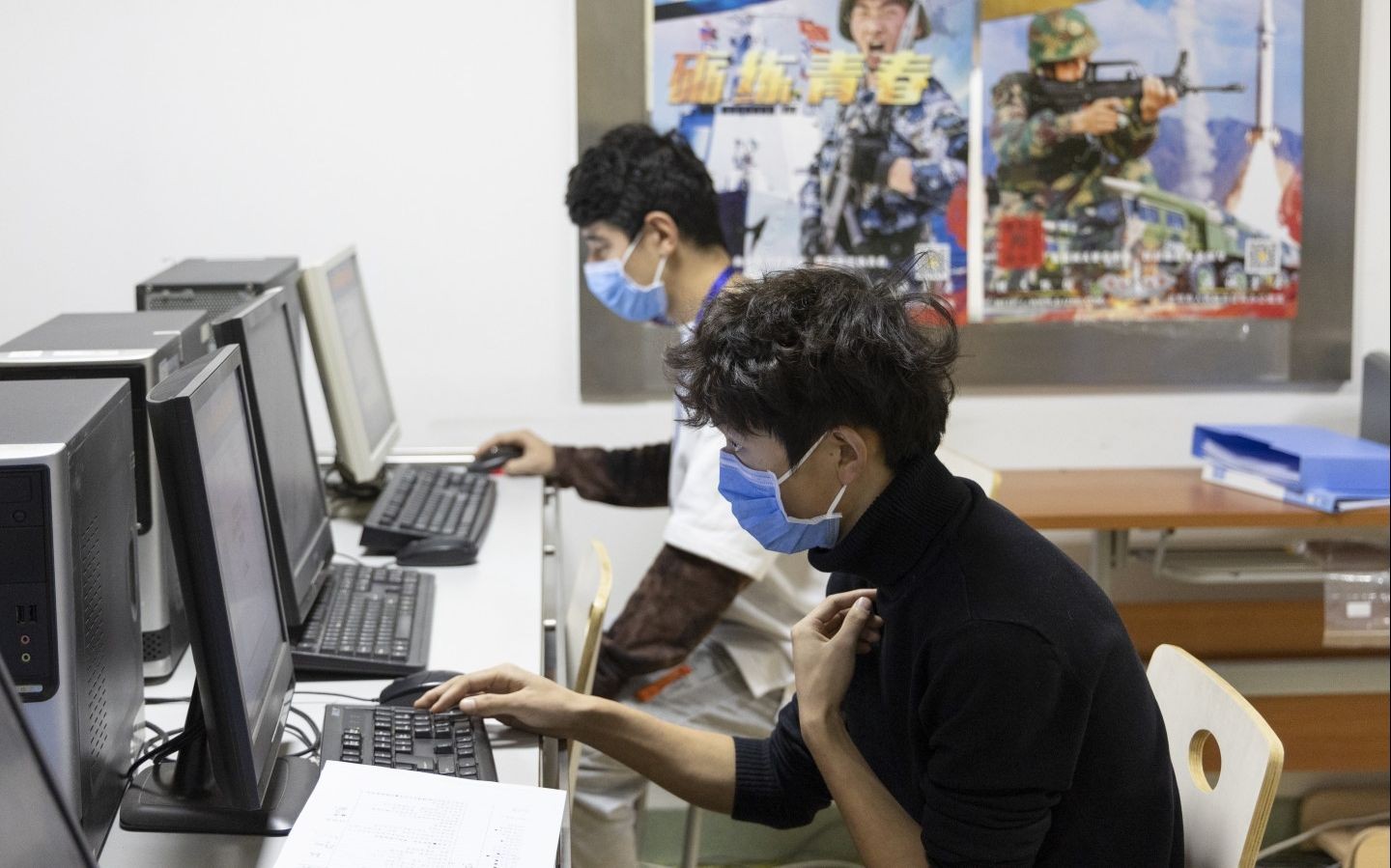 前来征兵体检的大学生在进行抽血检查。新京报记者 陶冉 摄