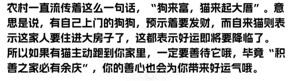 主动送上门来的猫,你要相信他不是没有原因来的,可能是跟你磁场相符合,也有可能是你的磁场需要他来改善,既然人家都来了,来都来了就养了吧!