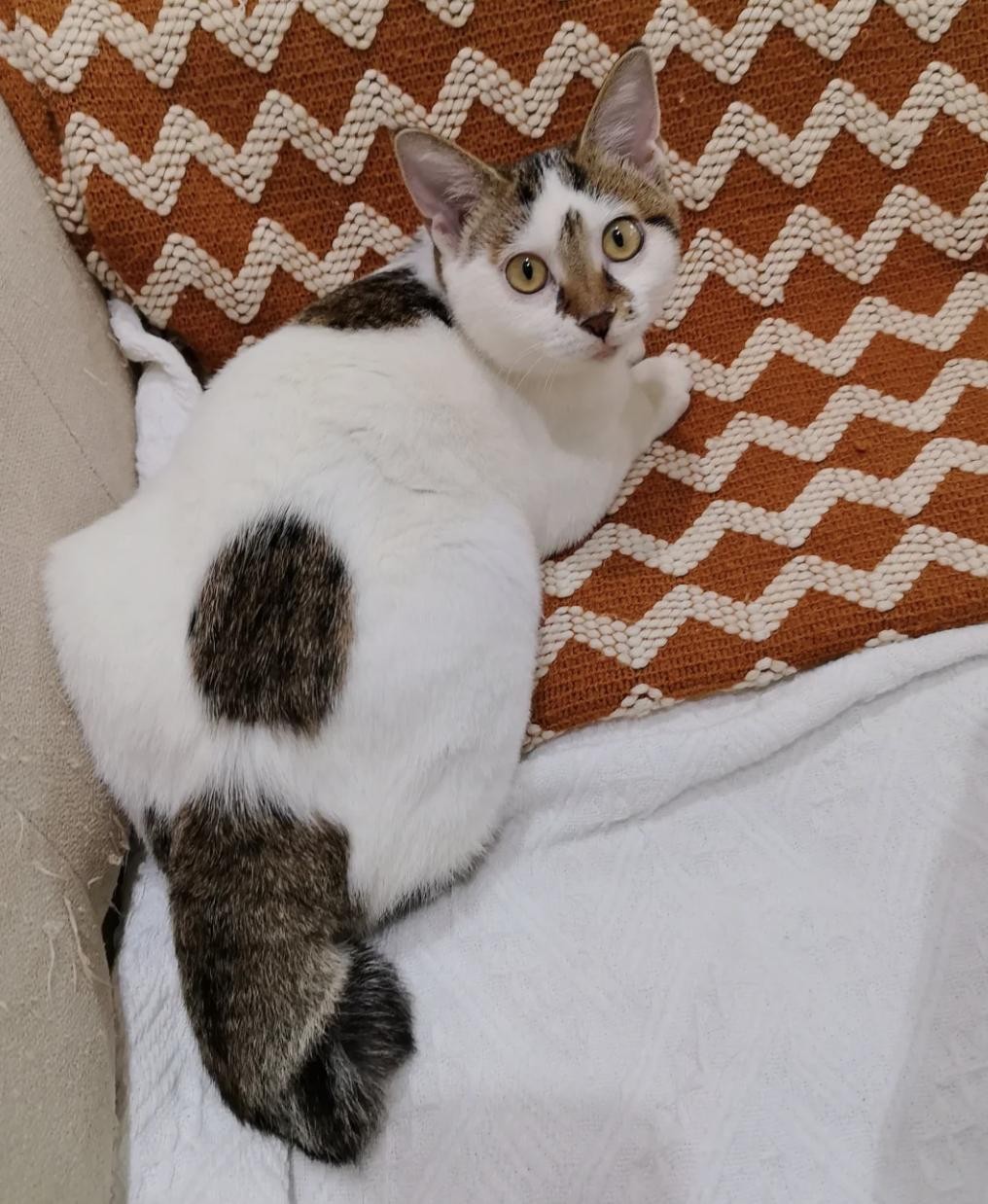 就是猫咪端坐在那里的时候,你从正面看耳朵是竖的高高,然后你从侧面肯定会发现耳尖是在前面的,那这种就是人们所说的招财耳,赶紧看看你家有没有!