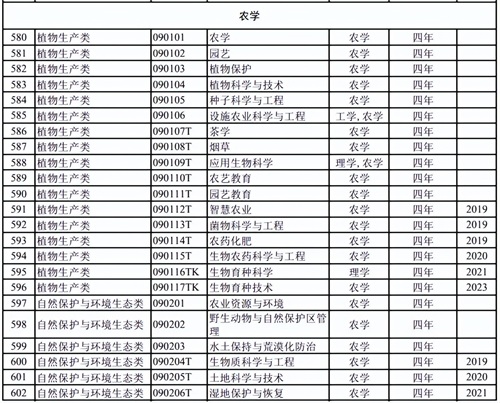 农学门类下有植物生产、自然保护与环境生态、动物生产、动物医学、林学、水产、草学等几类。