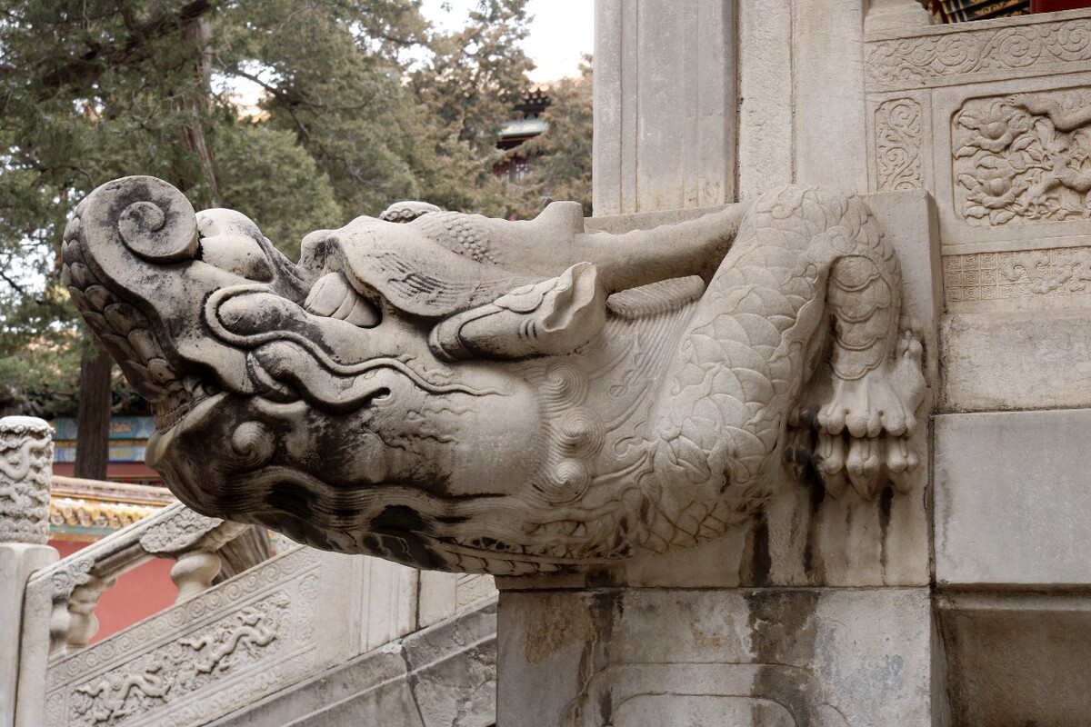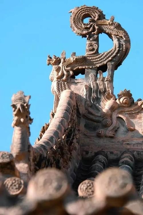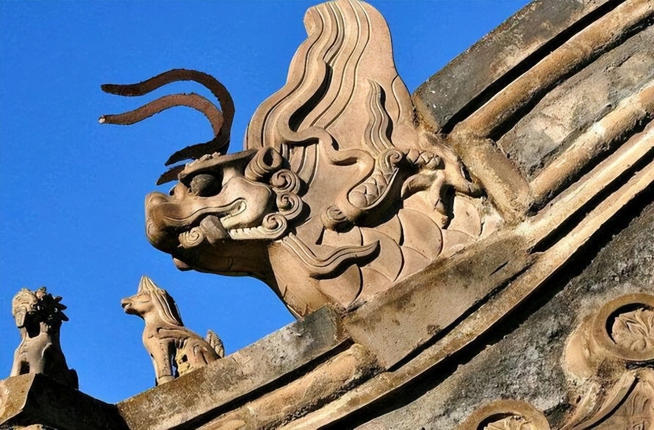 兽形,平生好险又好望,通常把它雕刻在殿台角上。嘲风,不仅象征着吉祥、美观和威严,而且还具有震慑妖魔、清除灾祸的含义。