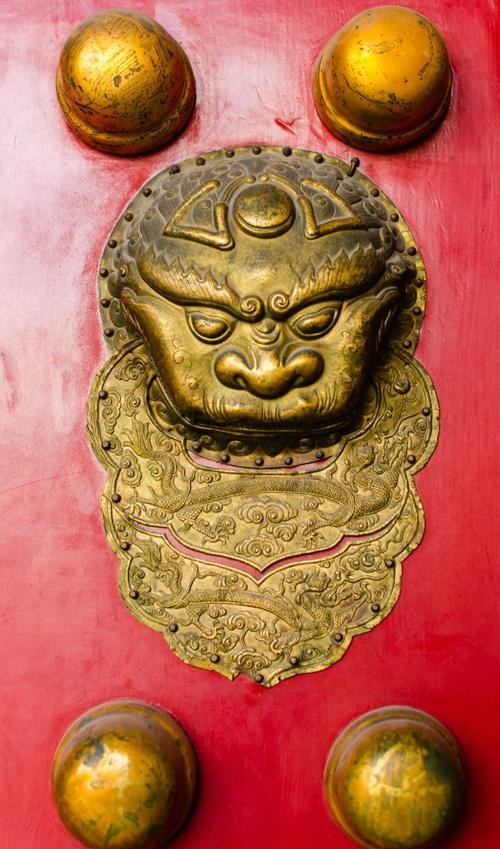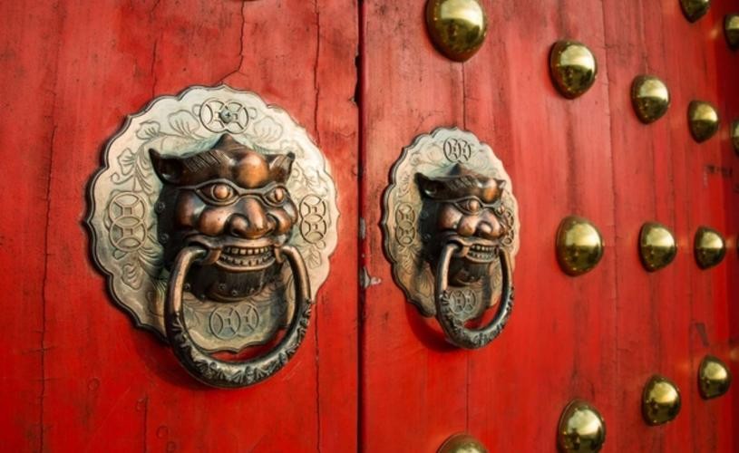 椒图,龙生九子之一,形状像螺蚌,性好闭,最反感别人进入它的巢穴,铺首衔环为其形象。因而人们常将其形象雕在大门的铺首上,或刻画在门板上。螺蚌遇到外物侵犯,总是将壳口紧合。人们将其用于门上,大概就是取其可以紧闭之意,以求安全吧。