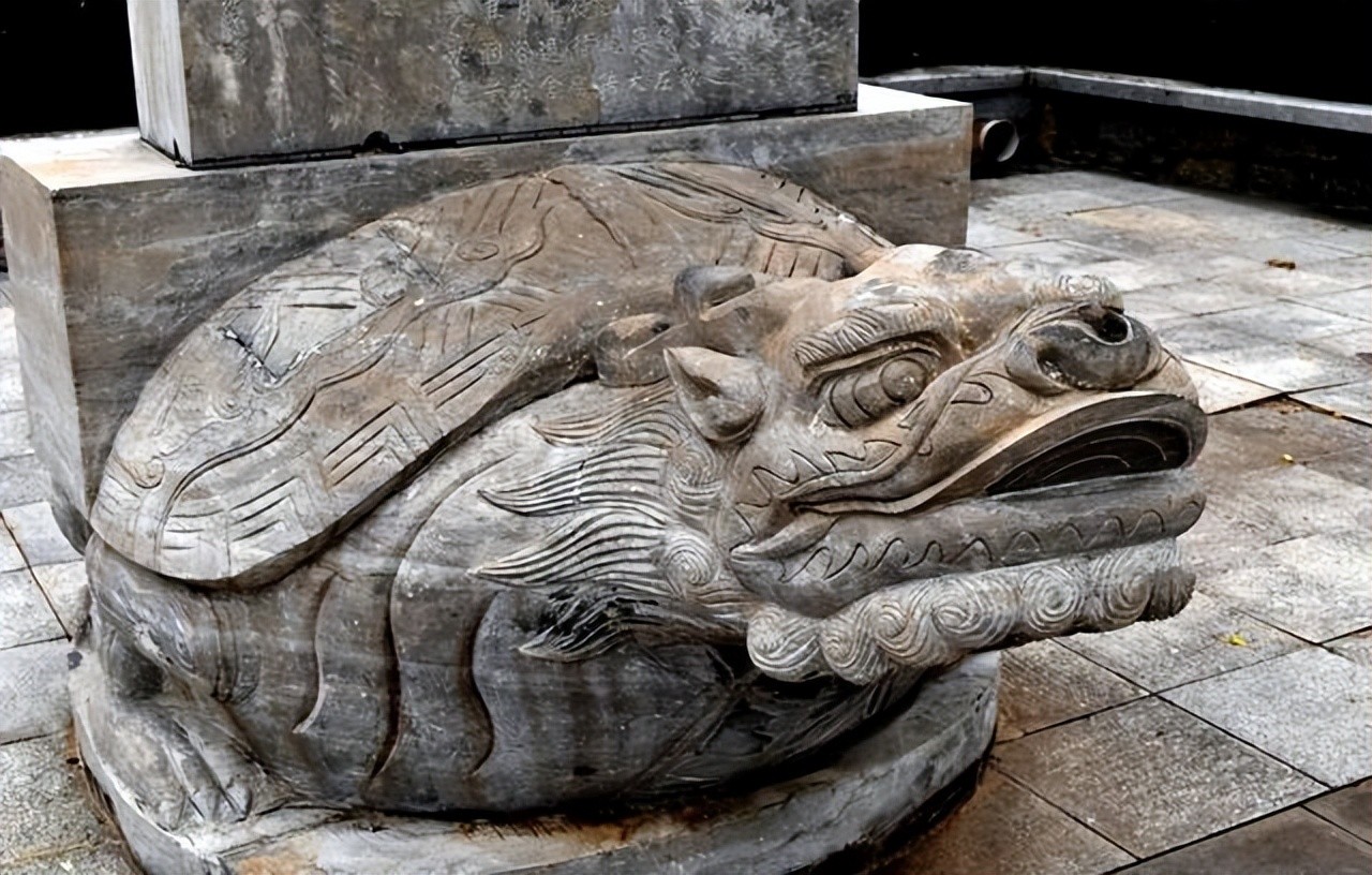 霸下(赑屃),龙生九子之六,霸下,形似龟,平生好负重,力大无穷,碑座下的龟趺是其遗像。疑为是龙于龟的孩子,其母是一只龟。