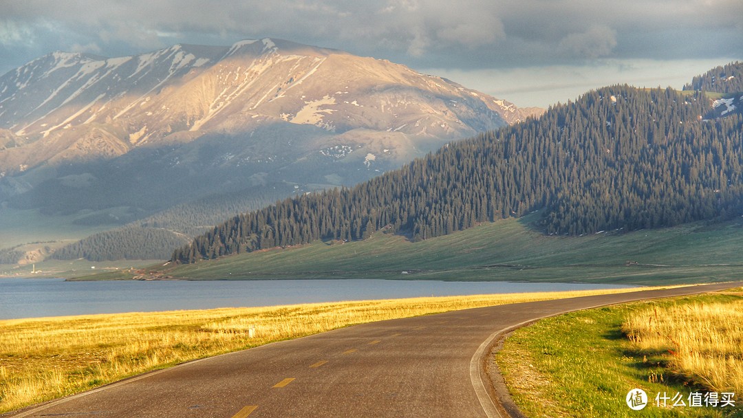 这是新疆S315省道中的一段路,从乔尔玛到尼勒克县种蜂场,绵延75公里,一路都是河流和高山草甸的景色。自驾在这条路上,蓝天白云在远山之间,道路两边是雪岭,云山和大草原。道路两边的天山上还分布着一些高山湖泊,当草原与农作物彼此相见,浓浓的风情瞬时袭来。