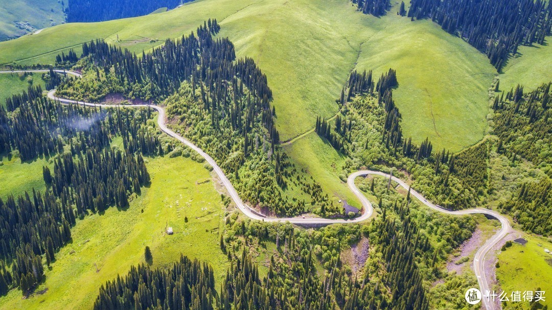 独库公路的中段是全程景色最柔美的一部分。从那提拉出发后一路往上,即将翻越的是海拔3200余米的玉希莫勒盖达坂,这段路的风景很值得一看。在山的另一边是漫山遍野的草甸,层层绿色,层峦叠嶂,非常好看。这段路的路况也很平缓,行驶起来较为安全。沿着山路往下,山脚下是伊犁河谷的尽头,从这里向路的右边行进,可以抵达空中草原——那拉提(上文有详细介绍过)。在那拉提镇,累了的朋友可以在这里休息一阵。