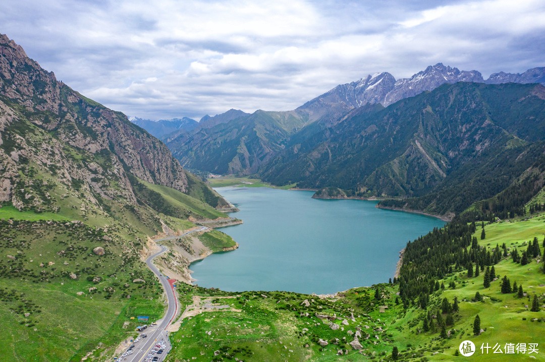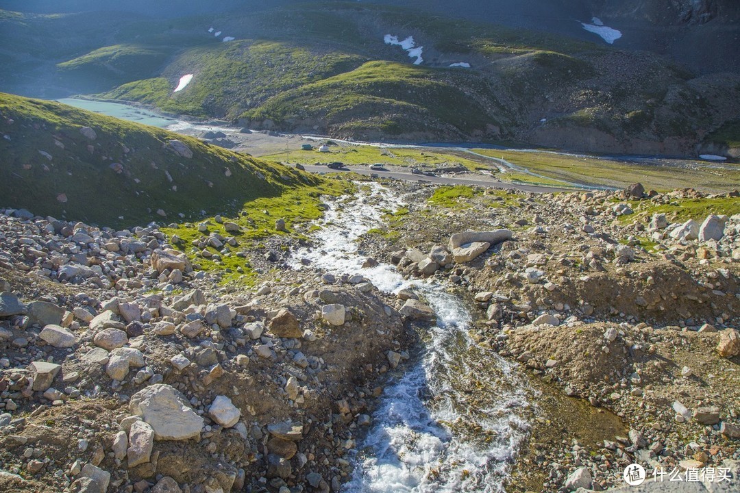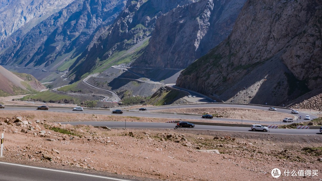 之后,沿着山路十八弯攀升开向天山之巅。这条路上,你能看到路边的冰川,同样也会觉得惊险刺激。很快,我们就来到了海拔3390米的哈希勒根达坂,顺利的话你可以在六七月份的这里,看到漫天飞雪。在这里的观景平台上,你能回头观望走过的路,也能在这里拍拍照片,短暂休息一会儿。