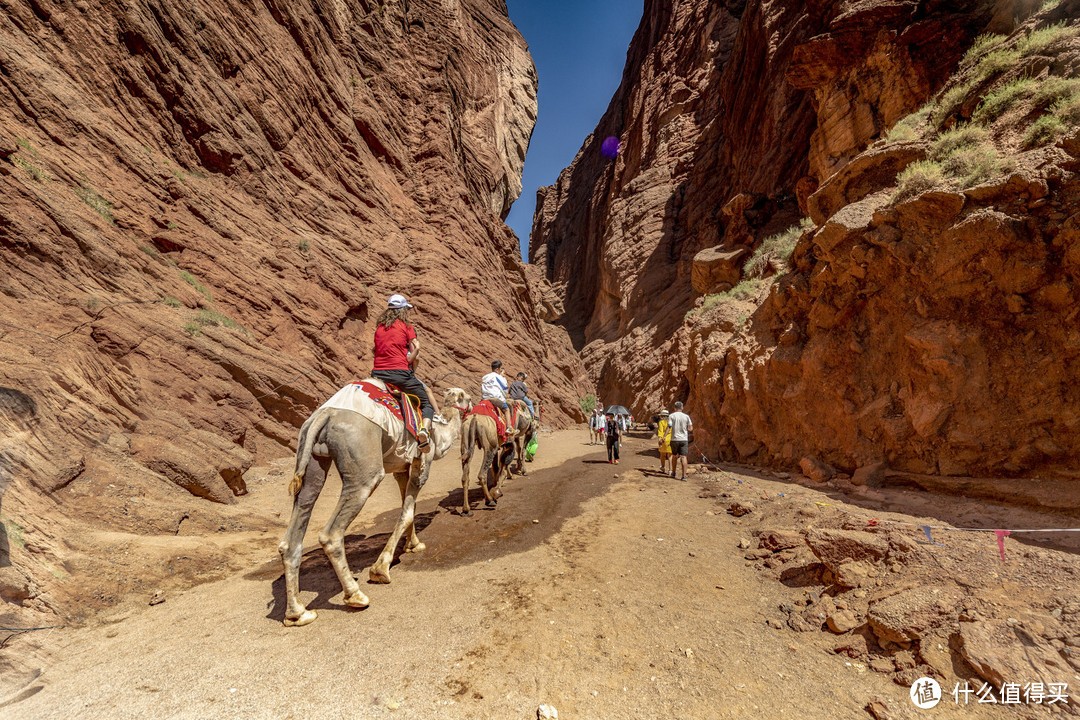 天山神秘大峡谷作为中国十大最美峡谷之一,也是独库公路的必经之地。红褐色的岩石经过亿万年的风雨雕刻,形成了红色的悬崖。在峡谷之间走一走,曲径通幽。当晴天正午的时候,阳光从峡谷顶端穿射而下,岩石上的光影变化非常有视觉冲击力。