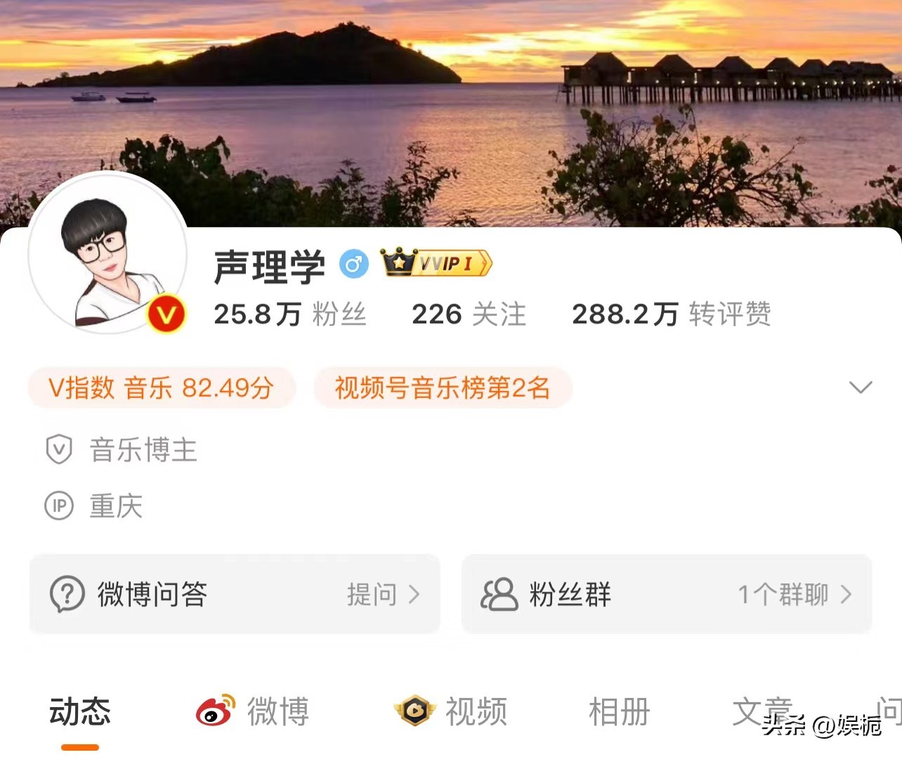 动态中直接艾特出了一名微博博主“声理学”,称对方对于这次“芒果台”和“江苏台”的歌唱节目有自己的见解,直言“芒果台”的晚会中存在大量假唱现象。