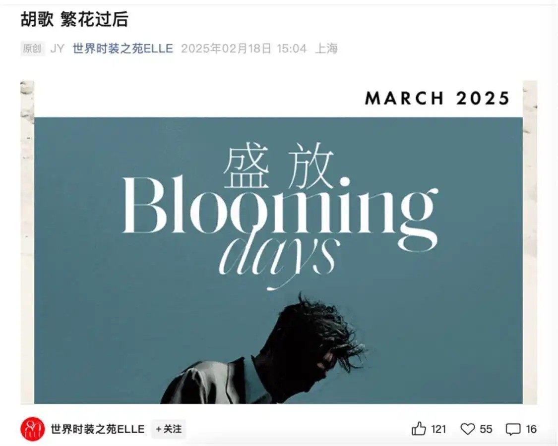 2月18日,时尚杂志《ELLE世界时尚之苑》发布三月刊封面。