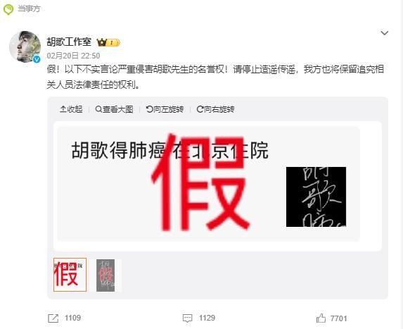 眼看这一假消息已经引起了很多网友的关注,胡歌工作室第一时间站出来辟谣。
