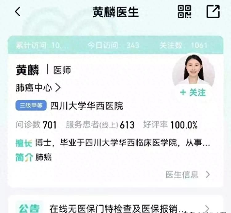 据知情人称,案例中的这位女主人公名叫黄麟,毕业于华西大学临床医学院,是一名高学历的博士生,案发时只有三十多岁,年轻有为。