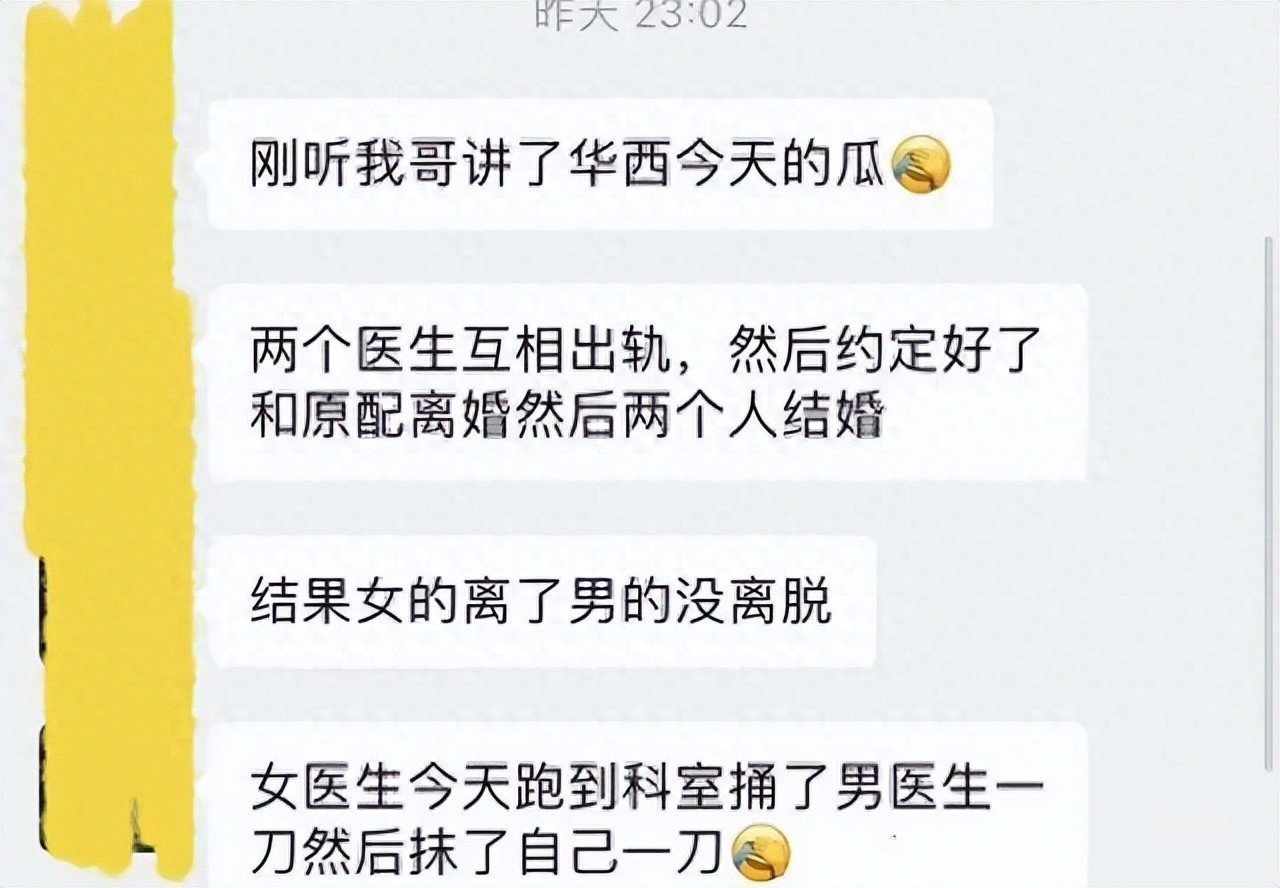 华西医院两医生因婚外情,发生持刀伤人事件,纪检部门:暂不知情