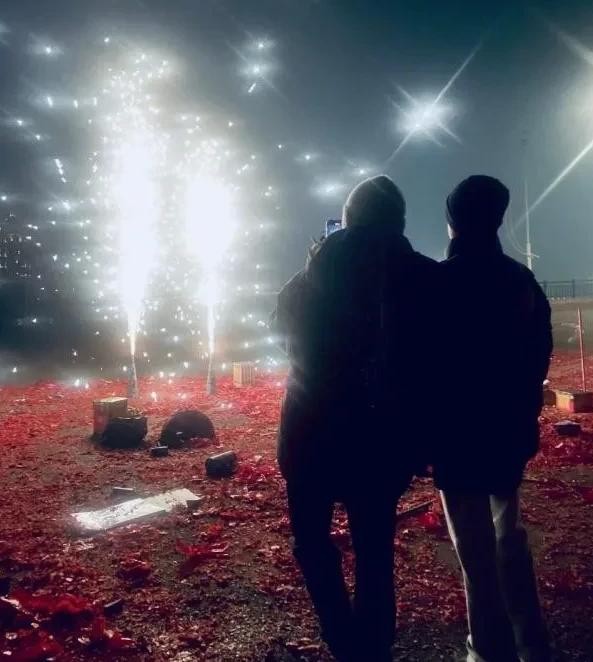 他陪伴儿子一起放烟花,父子俩相处的亲密无间,想必双方都已经等待很久这一天的到来。